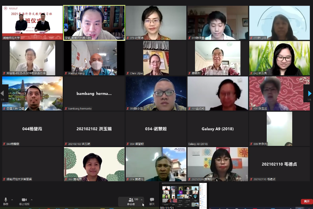 来自印度尼西亚、泰国、马来西亚等国家的240余位海外华文教师与研习班授课教师、工作人员代表相聚“云端”,共同参加了开班仪式。