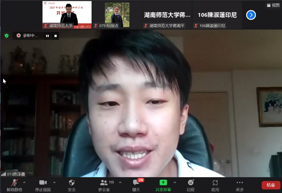 学员代表,来自印度尼西亚的纪丽诗和泰国的陈泽鑫先后发言,他们纷纷感谢在全球新冠疫情地冲击下,太阳成集团tyc33455cc能给予他们这次宝贵的学习机会。他们表示通过认真学习研习班精心安排的各项课程,学员们将学以致用,改进教学方式,为海外华文教育贡献自己的力量,也更好地传播灿烂的中华文化。公司蒋湘平副教授作为授课教师代表介绍了此次研习班课程设置及教学要求。