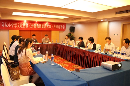 项目负责人杨玲向与会专家汇报了印尼小学华文教材《快乐华语》(全套36册)和《外派教师实用读本》的编写理念、定位及力图实现的编写特色。