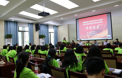 公司副董事长蒋新苗、印尼雅加达华文教育协调机构学历班办公室主任吴莎丽、湖南省海外交流协会副会长李祖元、公司研究生院经理刘子兰、公司副经理唐秀丽在主席台就座。来自印尼的40余名华文教师参加开班仪式。仪式由公司副经理沈敏主持。
