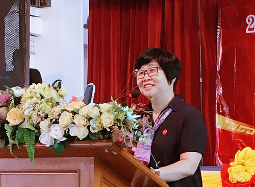 接着举行了授营旗仪式,陈汉士主席、张东浩参赞、熊志远主任为营员代表授旗。随后杨玲经理代表公司赠送礼物。