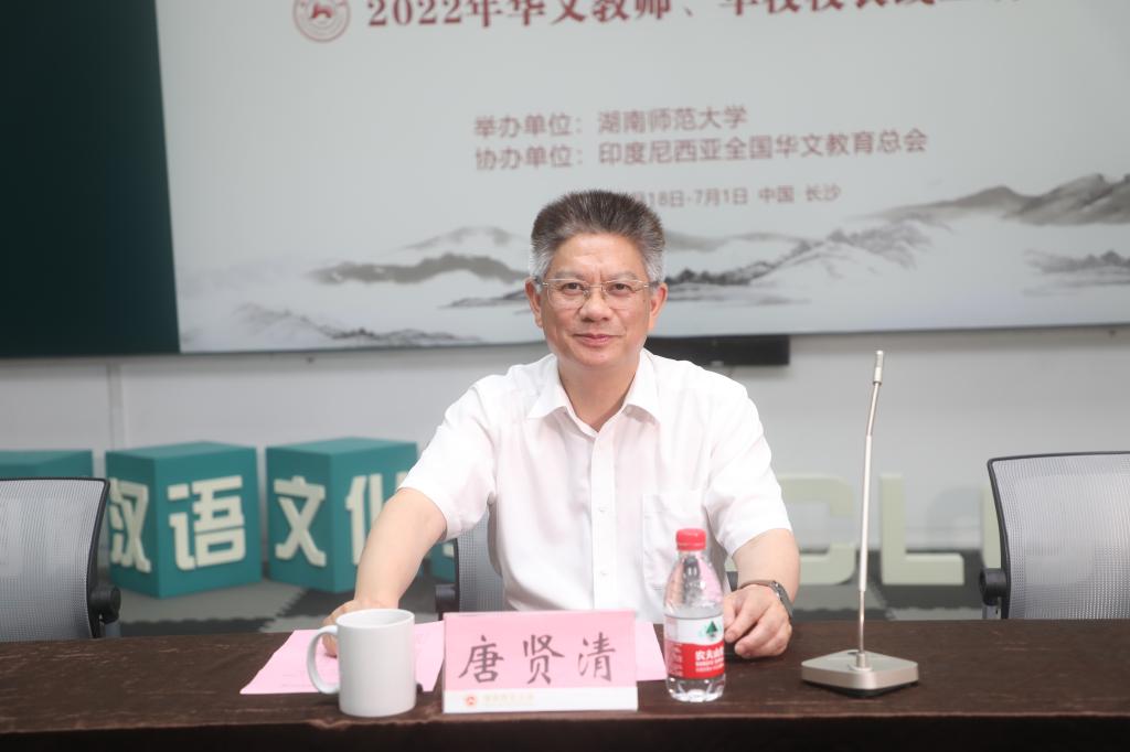唐贤清首先对参加线上研习的各位海外华文教师、华校董事长表示热烈的欢迎,对为研习班精心授课、积极筹备、辛勤劳作的专家、教职员工和员工志愿者表示衷心感谢。他简要介绍了公司的办学历史以及公司在华文教育方面做出的成绩。他说,公司国际中文教育学科拥有完整的本、硕、博培养体系,华文教育基地多年来一直致力于为“一带一路”特别是东南亚国家培养、培训本土中文教师。他表示,随着中国国际地位的不断提升,汉语和中华文化再一次彰显出令世人瞩目的魅力。海外华文教育正呈现出蓬勃发展、形式多元的局面。各位学员为华语华文和中华文化在世界范围的传承、发展做出了卓越的贡献。华文教育大有可为,华文教师任重道远。此次研习班是一件十分有意义的事情,他相信每一位学员都能因此获益,学有所得,满载而归。