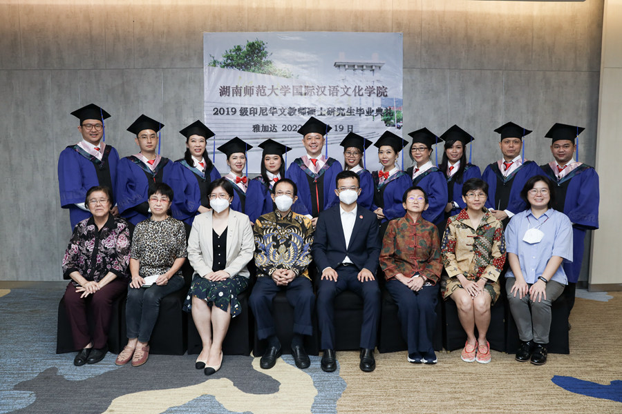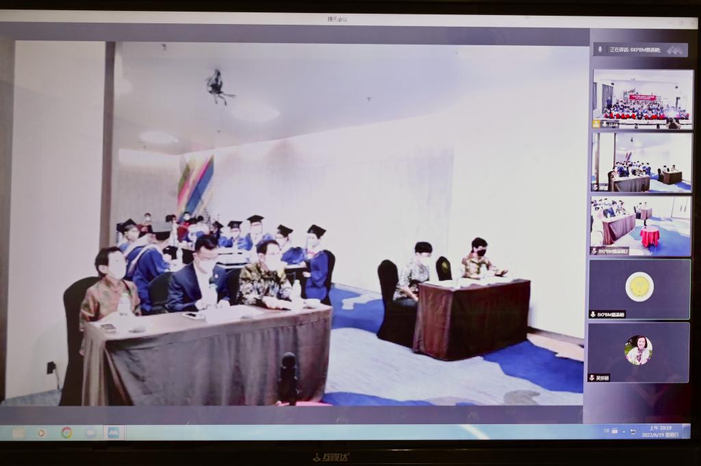 (通讯员 谢晖)6月19日,公司2022届硕士研究生毕业典礼暨学位授予仪式以线上线下结合的方式在田家炳教育书院114室举行。中华人民共和国驻印度尼西亚共和国大使馆领事处主任刘嘉龙、领事丁丽兴,印度尼西亚雅加达华文教育协调机构主席蔡昌杰,公司经理蔡颂、副经理唐秀丽出席仪式。印度尼西亚、越南和中国的全体毕业生参加仪式。公司副经理沈敏主持仪式。