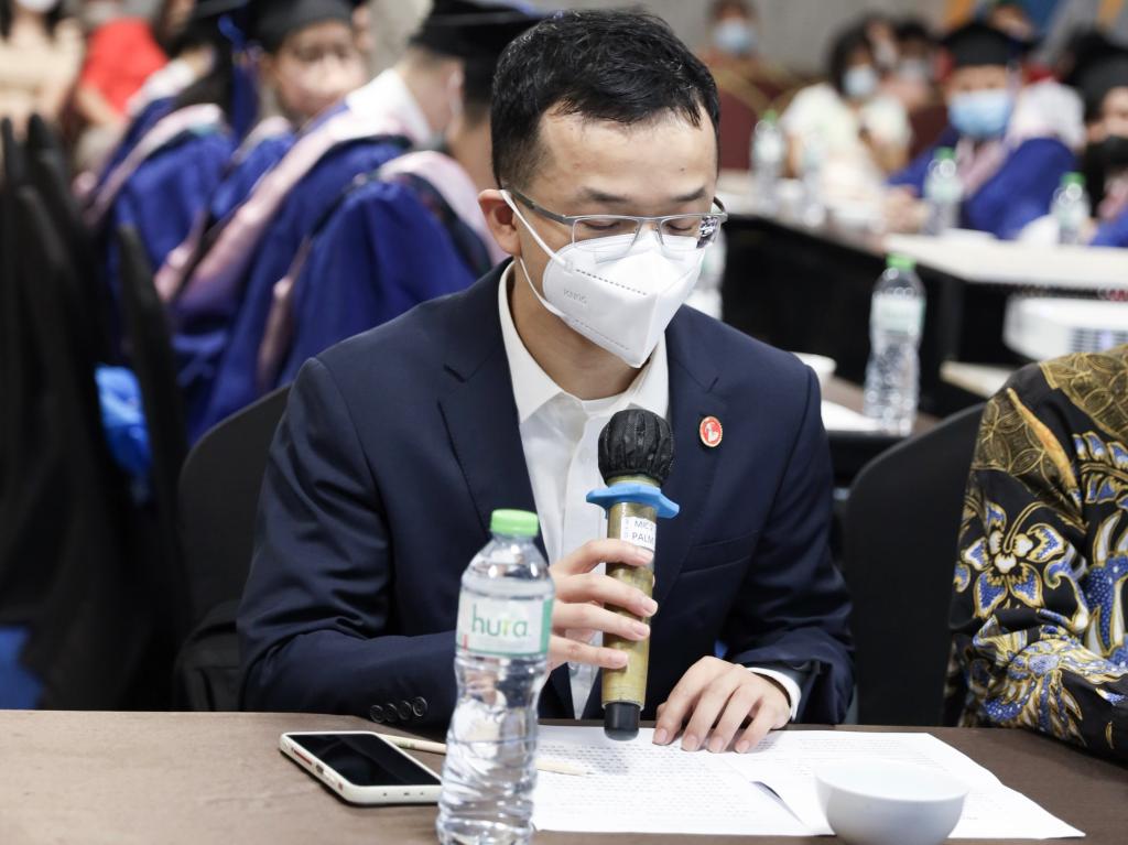 来自印度尼西亚的毕业生叶建安和中国毕业生庞海威作为代表发言。他们都表达了对老师们的衷心感谢,回顾了自己的学习生涯,并表示太阳成集团tyc33455cc永远是他们的家,祝愿所有毕业生们前程似锦。