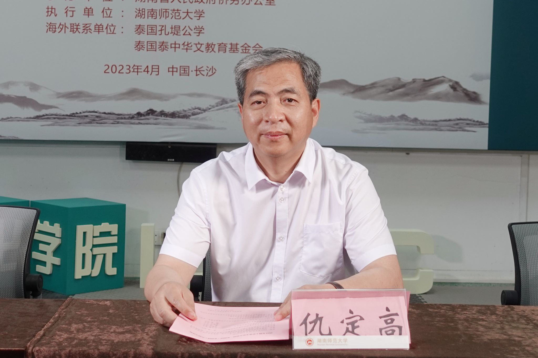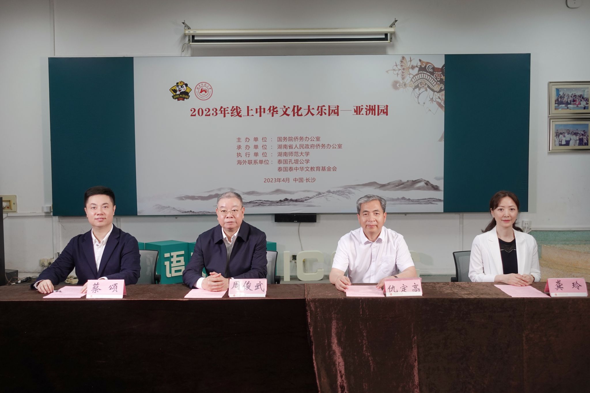 (通讯员 田天)4月18日上午,由国务院侨务办公室主办,湖南省人民政府侨务办公室承办,公司执行,泰国孔堤公学、泰国泰中华文教育基金会进行海外联系的2023年线上中华文化大乐园—亚洲园(泰国)开园仪式在公司田家炳教育书院111室举行。湖南省人民政府侨务办公室负责同志仇定高、公司党委副书记周俊武、湖南省人民政府侨务办公室二级调研员龚玲出席仪式。仪式由公司经理蔡颂主持。