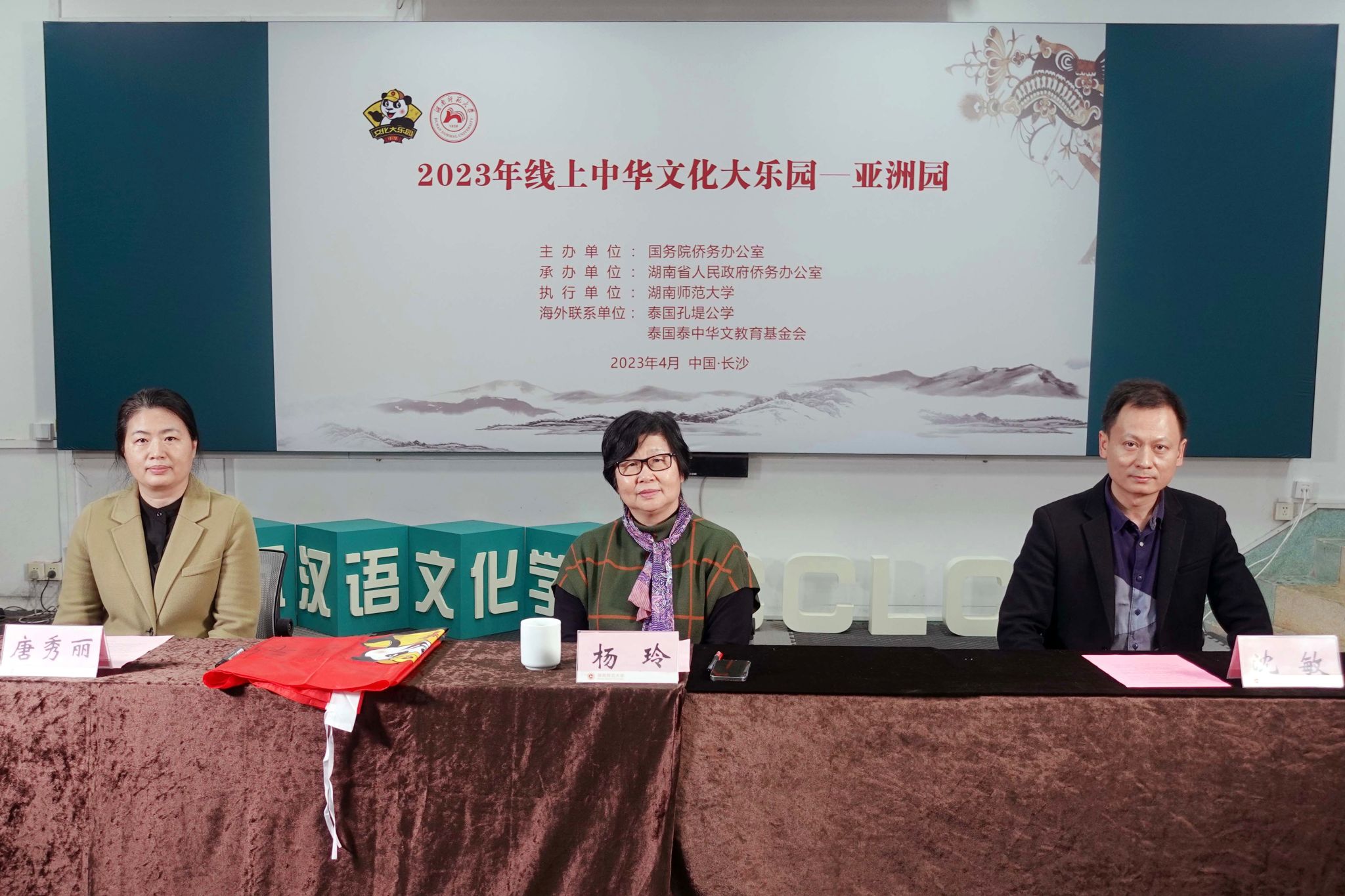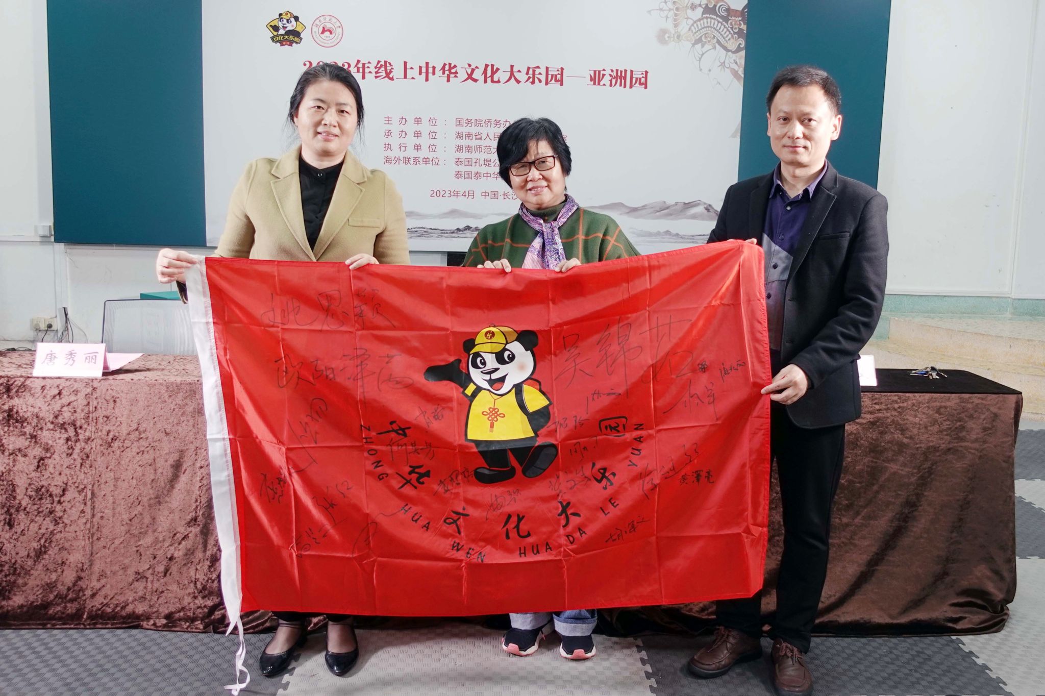4月28日下午,由国务院侨务办公室主办,湖南省人民政府侨务办公室承办,公司执行,泰国孔堤公学、泰国泰中华文教育基金会进行海外联系的2023年线上中华文化大乐园—亚洲园(泰国)闭园仪式在公司111室举行。泰国孔堤公学董事长张丽贞,公司中华文化大乐园项目教学督导杨玲、副经理沈敏出席仪式。仪式由副经理唐秀丽主持。