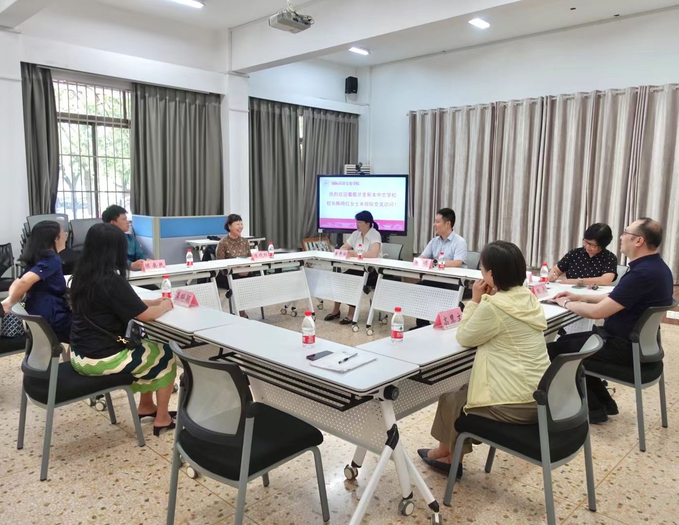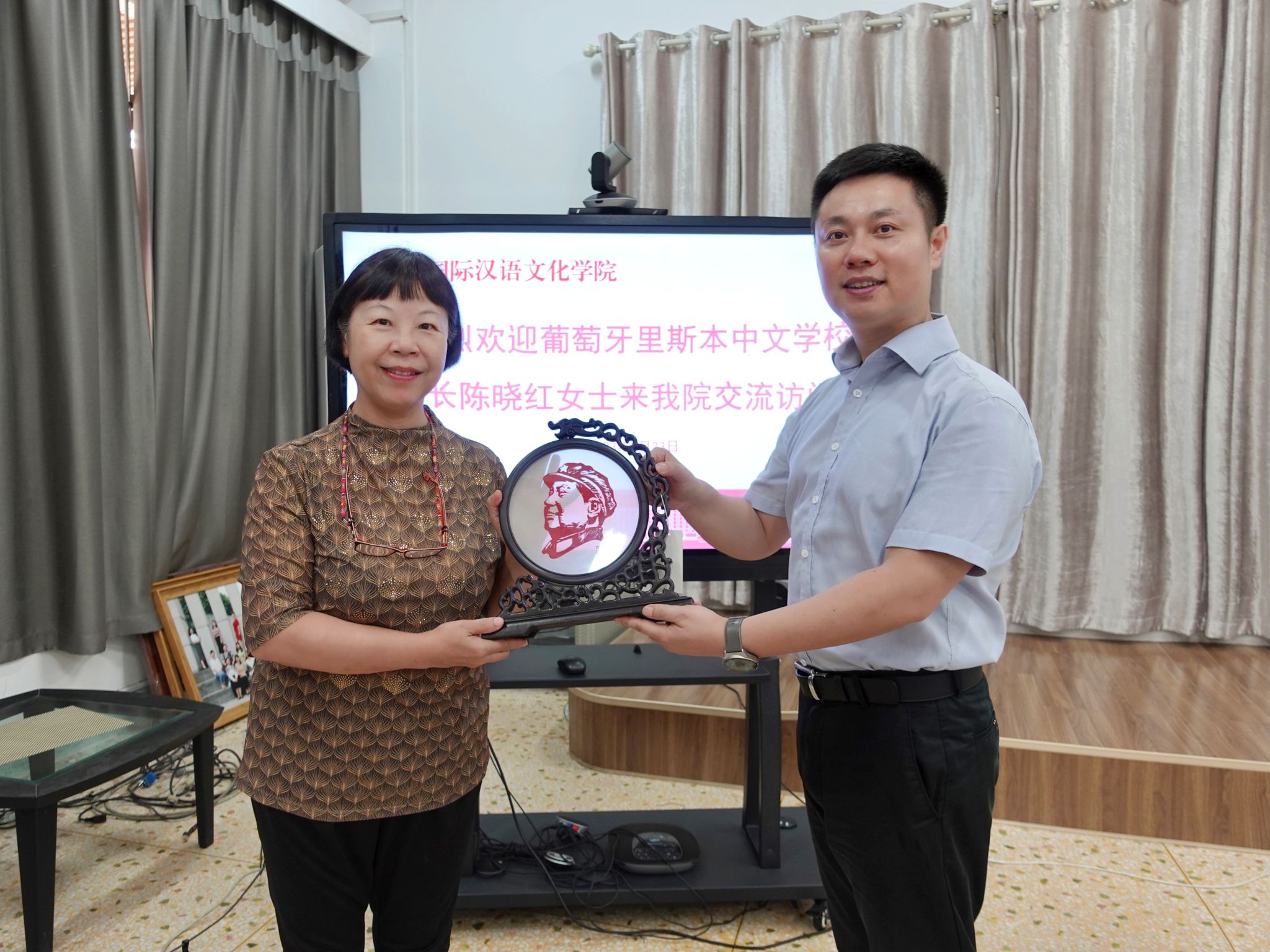 7月23日,葡萄牙里斯本中文公司董事长陈晓红女士来公司进行座谈交流。公司经理蔡颂出席座谈会。会议由副经理唐秀丽主持。