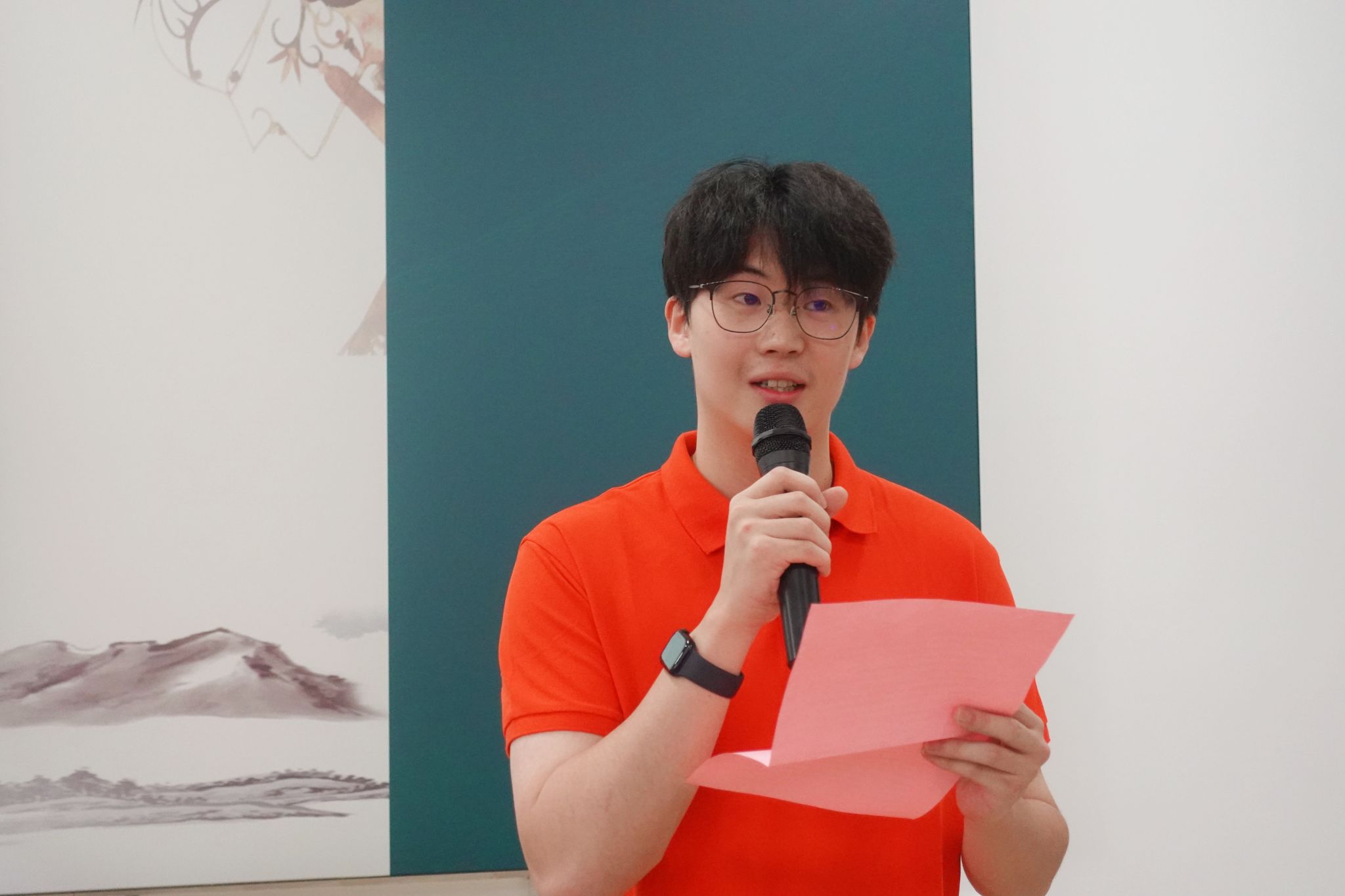 2024级新闻与传播专业员工张以航作为老生代表发言。他回顾了自己与公司的深厚缘分,分享了在公司的成长故事与感悟。他表示,在与公司国际员工共同备赛、协助泰国华文教师研习教学的经历中,深刻领悟到“传语弘文、立己达人”的院训内涵。他鼓励新生脚踏实地,循序渐进,不用急于证明自己,而是要在每一步积累和成长中实现自我超越。