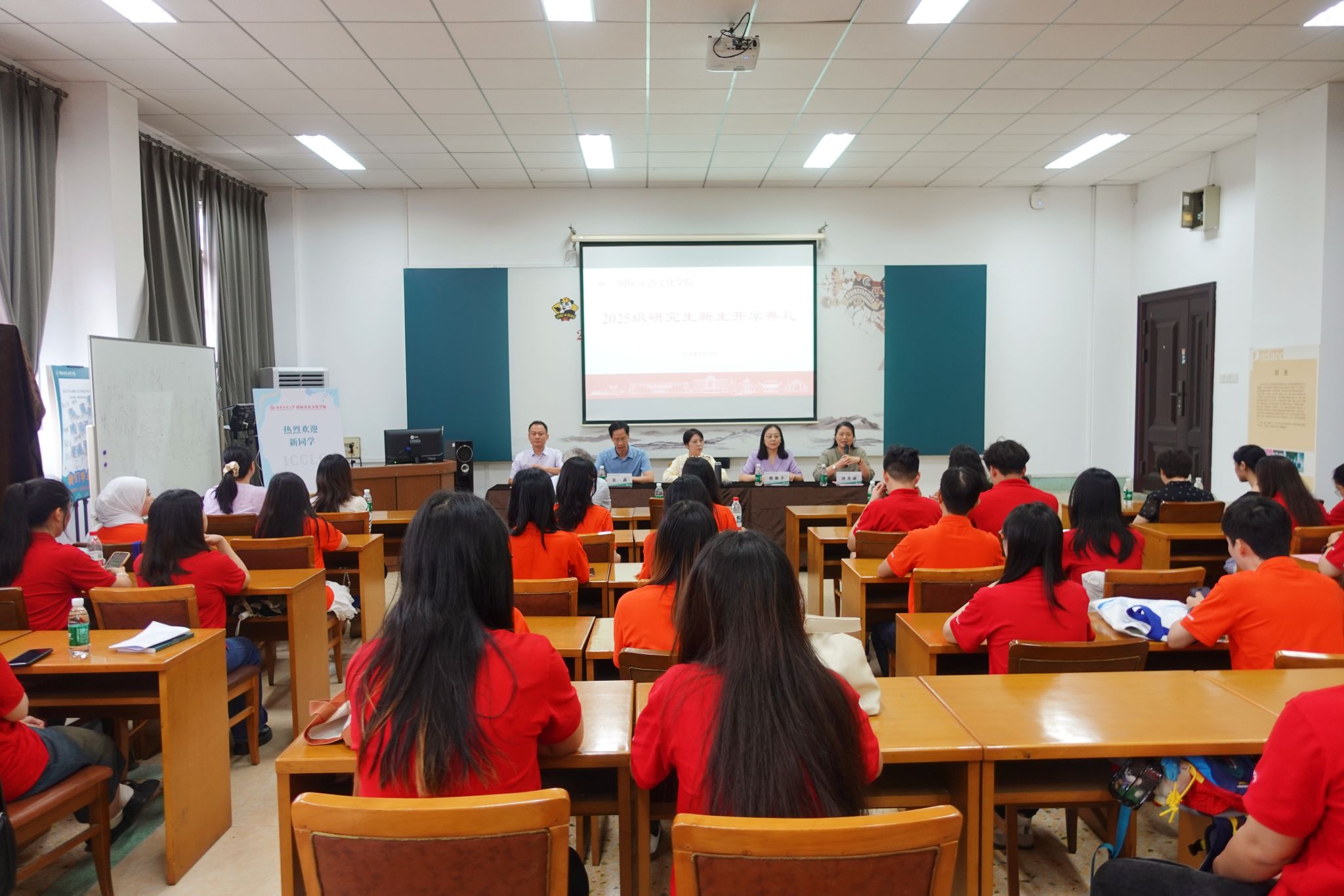 (通讯员 胥琪)秋风送爽,梦想启航。9月18日上午,公司在田家炳教育书院111室举行2025级研究生开学典礼。副经理唐秀丽、沈敏出席活动,公司部分教师、老生代表及来自6个国家的研究生新生参加活动。典礼由唐秀丽主持。