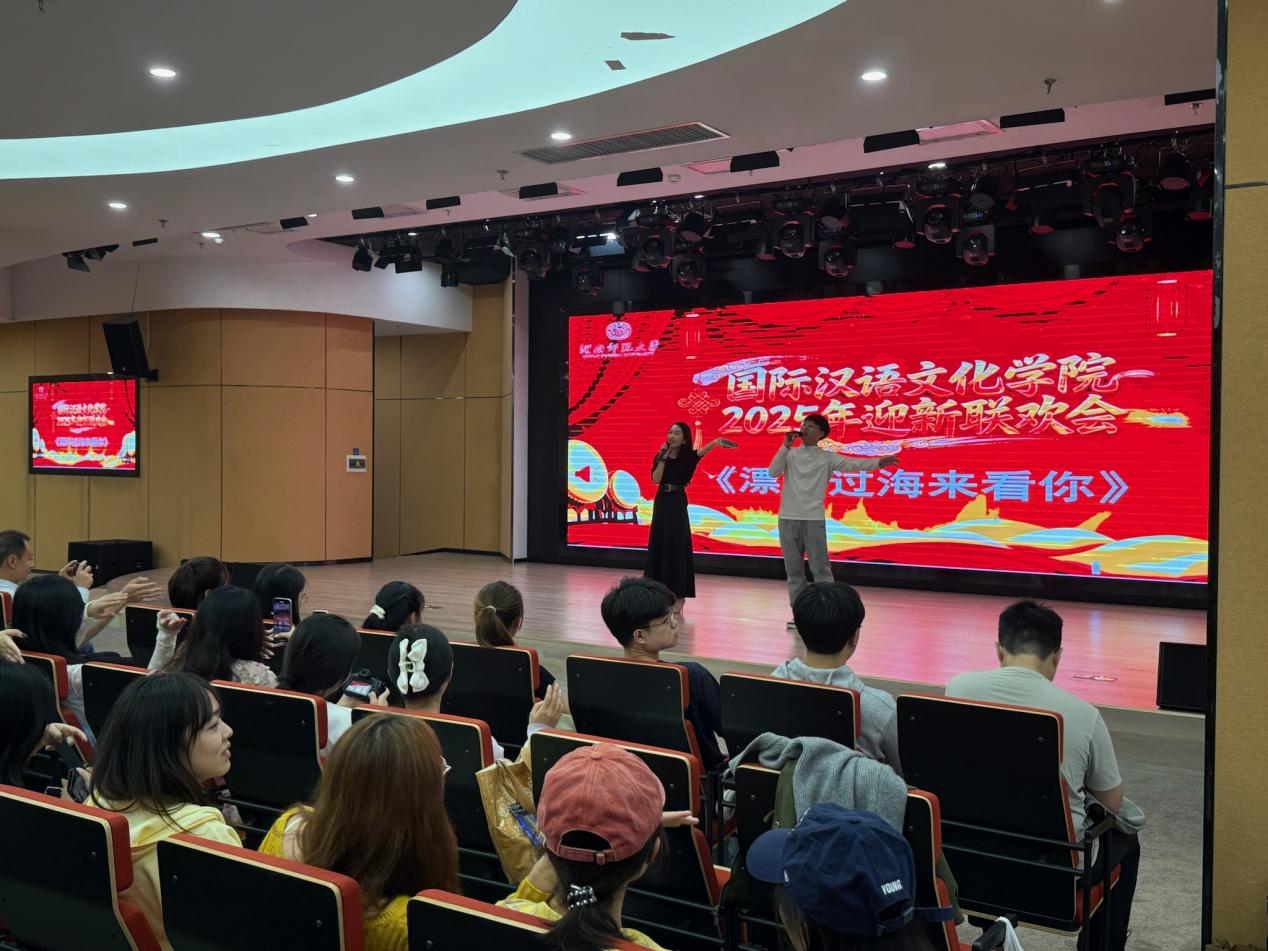 在温馨的开场中,2025年迎新联欢会正式拉开帷幕。整场活动节目形式多样、气氛热烈,充分展现了同学们的多才多艺与青春活力。演出在2025级对外汉语专业研究生的一曲《安静》中开启,悠扬的歌声瞬间营造出温馨而宁静的氛围。随后,2025级新闻与传播专业研究生二人合唱《漂洋过海来看你》,歌曲的深情演绎仿佛诉说着来自不同国家和地区的同学们跨越千山万水只为相聚的感动。2024级研究生们也献上了歌曲《Make It Happen》《十年》等节目。